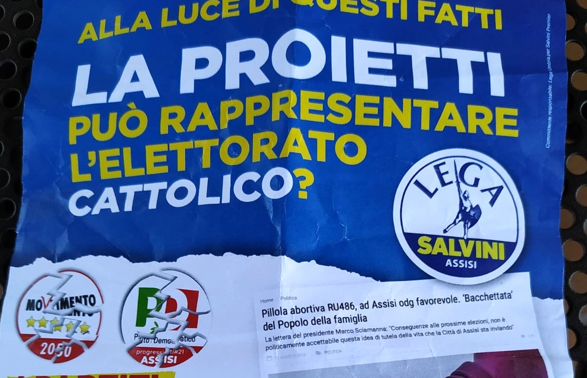 Volantino, ad Assisi, attacca la proietti, Thomas De Luca alza gli scudi