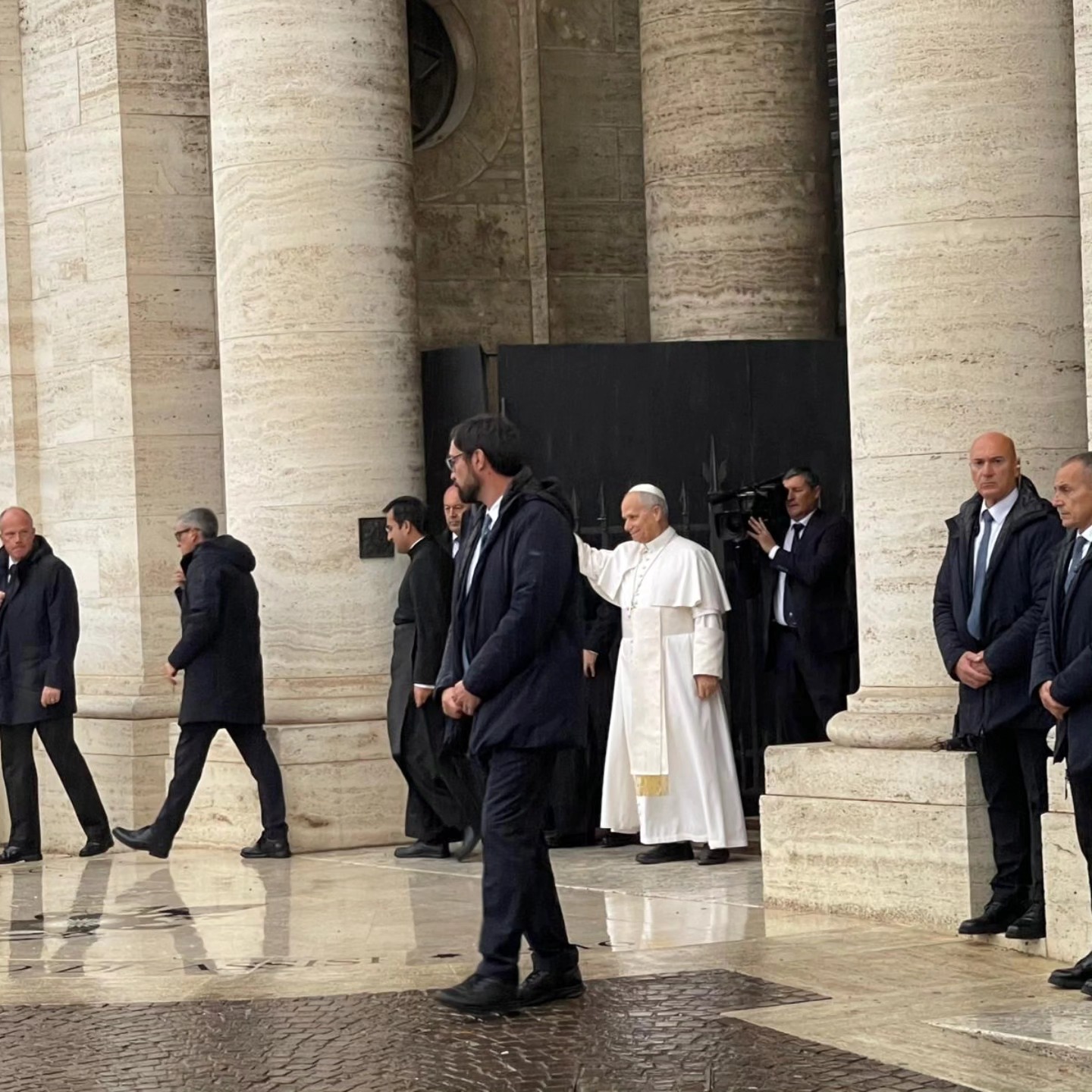 Assisi è stata sottoposta a un massiccio dispositivo di sicurezza fin dalle prime ore. L’arrivo del Pontefice in elicottero nell’area del teatro Lyrick, previsto intorno alle 8.40, ha richiesto una vasta operazione di controllo e interdizione di diverse zone della città. Nonostante le condizioni meteo sfavorevoli, alcuni fedeli si sono radunati nei pressi dell’arrivo e lungo il percorso, manifestando la loro vicinanza al Pontefice durante gli spostamenti tra le basiliche e i luoghi degli incontri istituzionali.